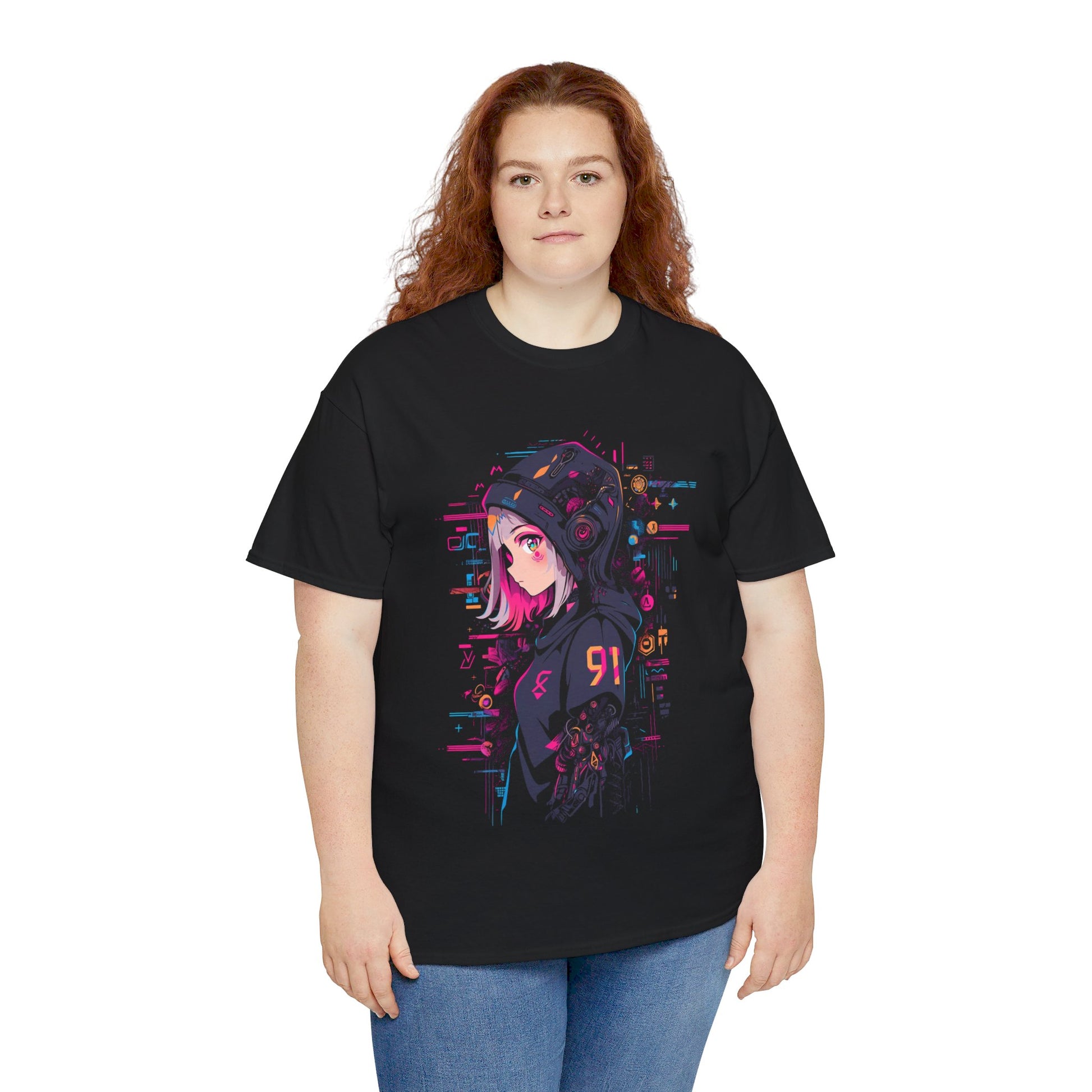 Cyberpunk Anime T-Shirt | Anime girl with hoodie