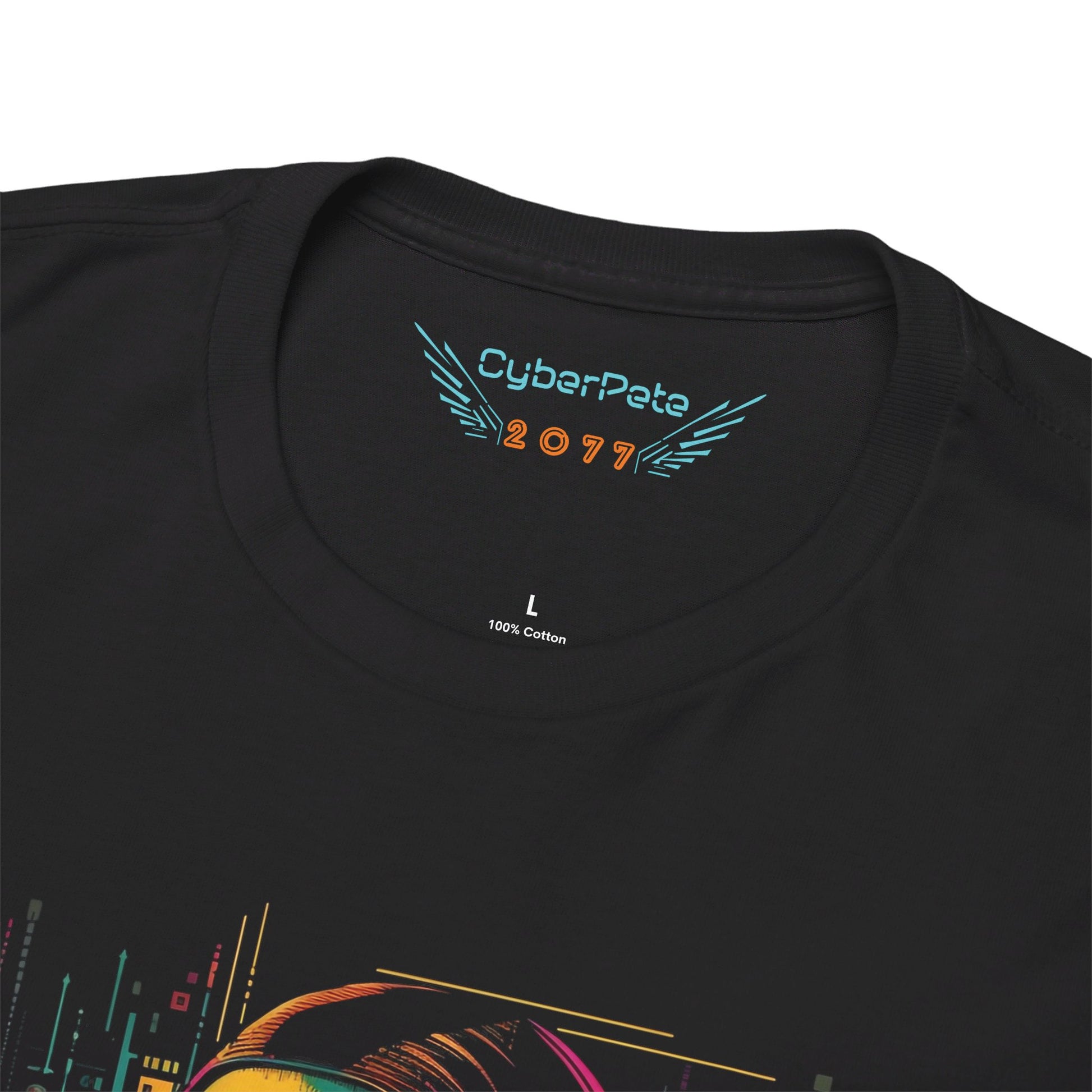 Immerse yourself in a world where classic art meets futuristic cyberpunk aesthetics with this fascinating "Cyberpunk Mona Lisa Unisex T-Shirt". This t-shirt is a unique work of art that reinterprets da Vinci's famous Mona Lisa in a cyberpunk style while highlighting the year 2077, a tribute to the cyberpunk genre. With neon accents and modern touches, it's a fascinating fusion of past and future. A small CyberPete2077 logo adorns the right sleeve and the inside of the neck of the T-shirt.