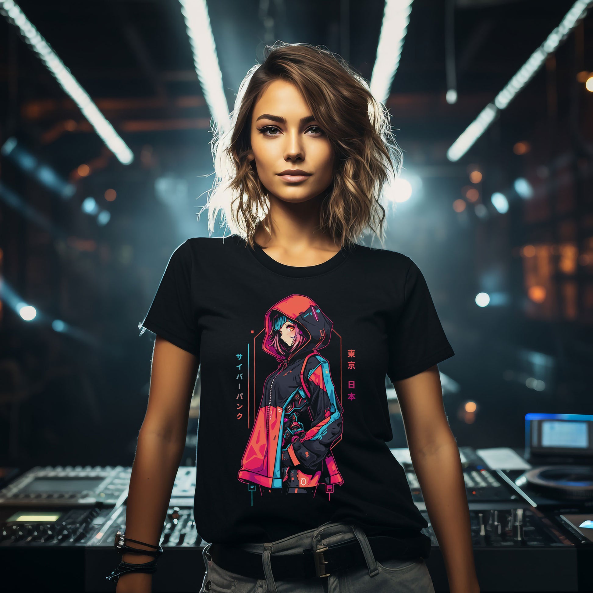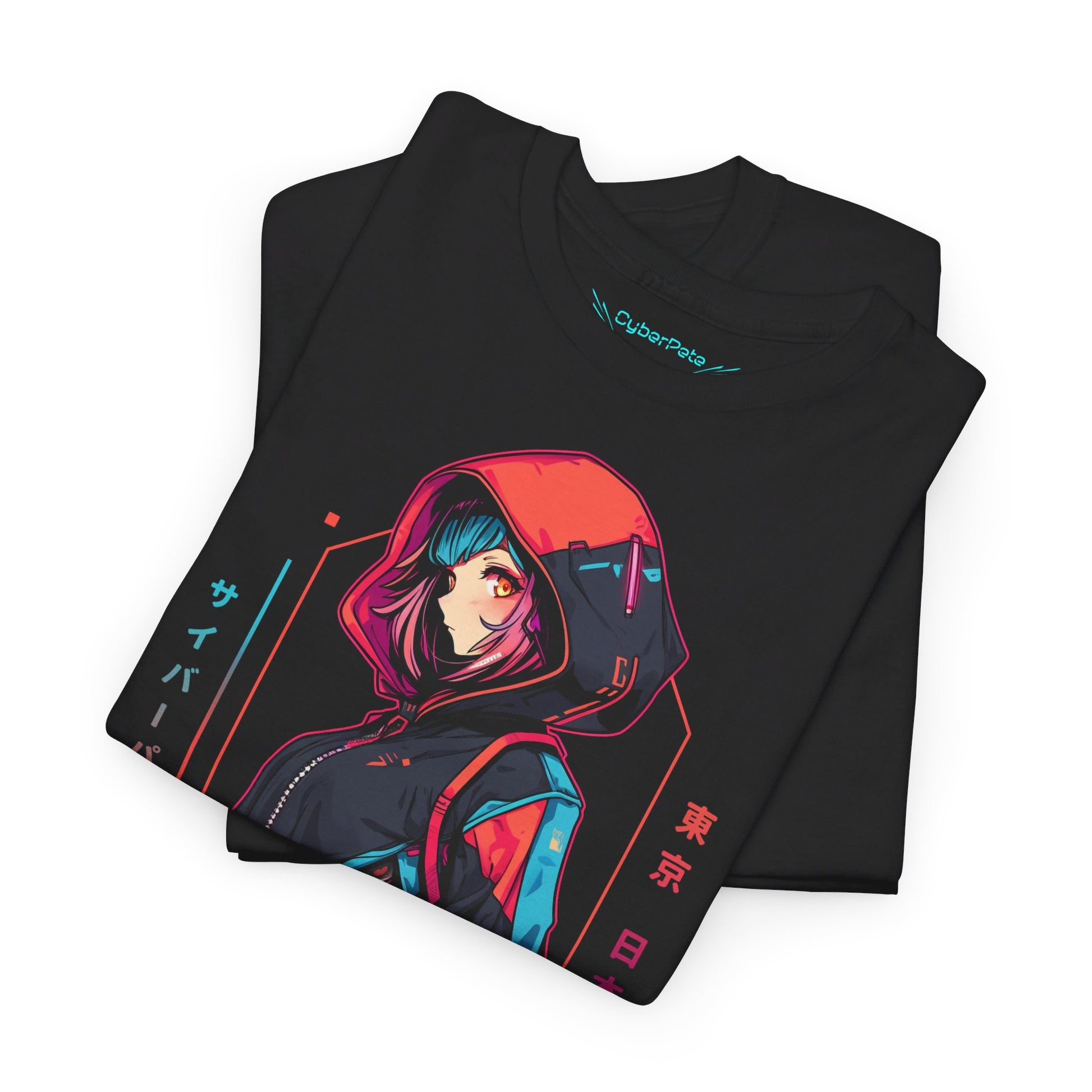 Cyberpunk Anime T-Shirt | Anime Girl mit Kapuzenjacke