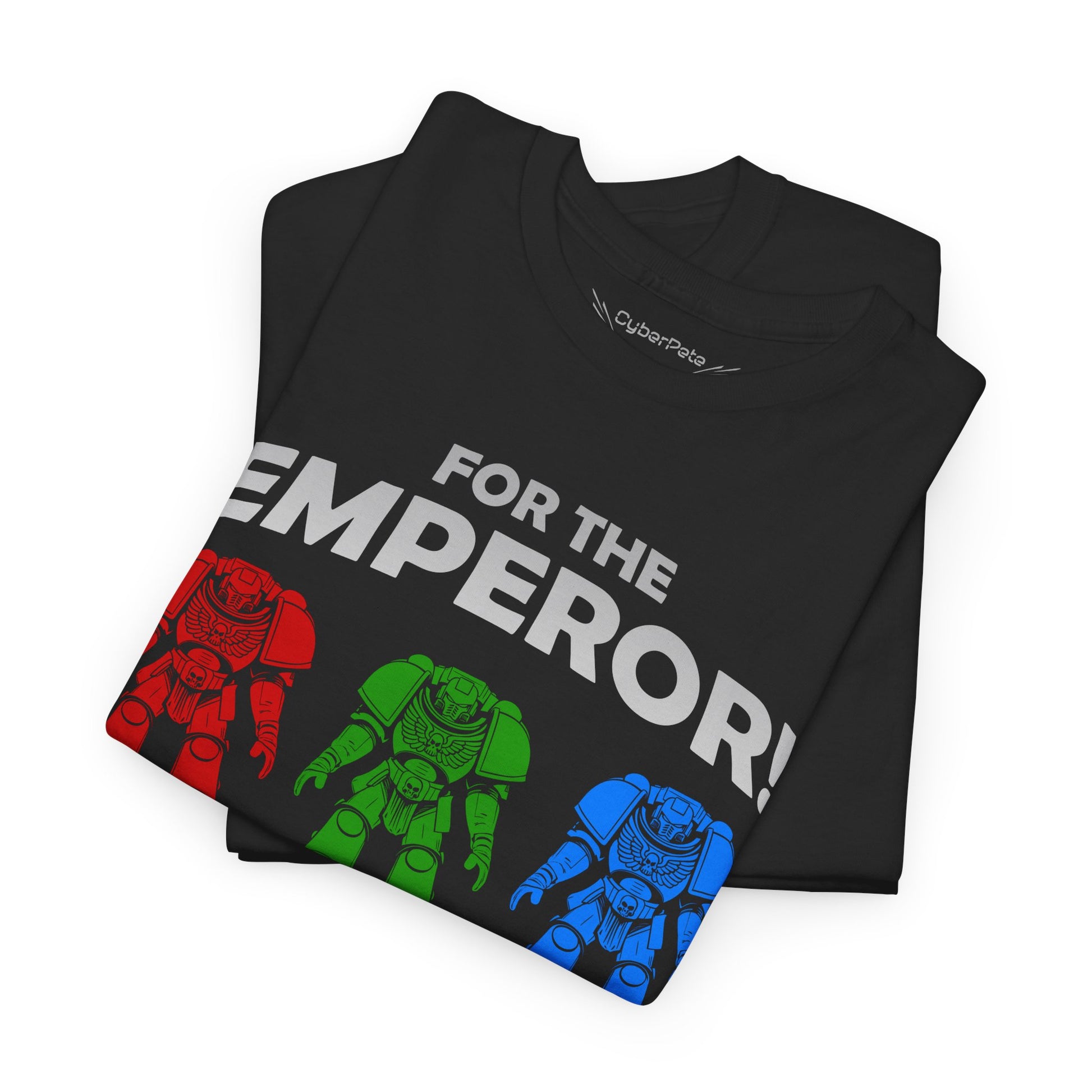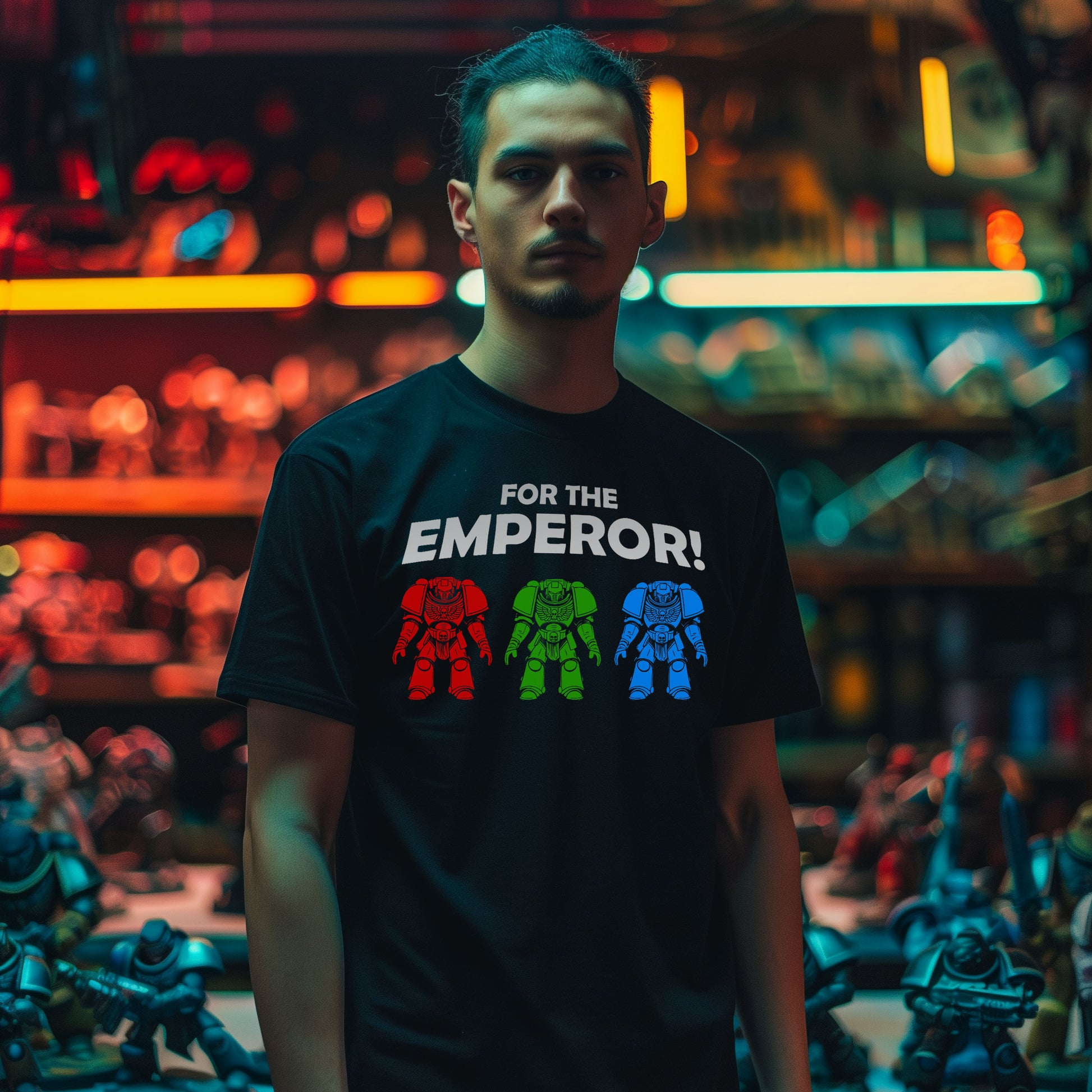 Mach dich bereit für den Kampf im Namen des Imperators! Dieses Retro RGB Space Marine T-Shirt ist eine Hommage an die ikonischen Elitekrieger und ein absolutes Must-Have für jeden Fan. Der große Frontdruck zeigt drei Space Marines in Rot, Grün und Blau – jede Farbe repräsentiert eine legendäre Fraktion des Imperiums. Ergänzt wird das Motiv durch den mächtigen Schlachtruf „FOR THE EMPEROR!“, der den unerschütterlichen Glauben und die Loyalität der Space Marines symbolisiert.