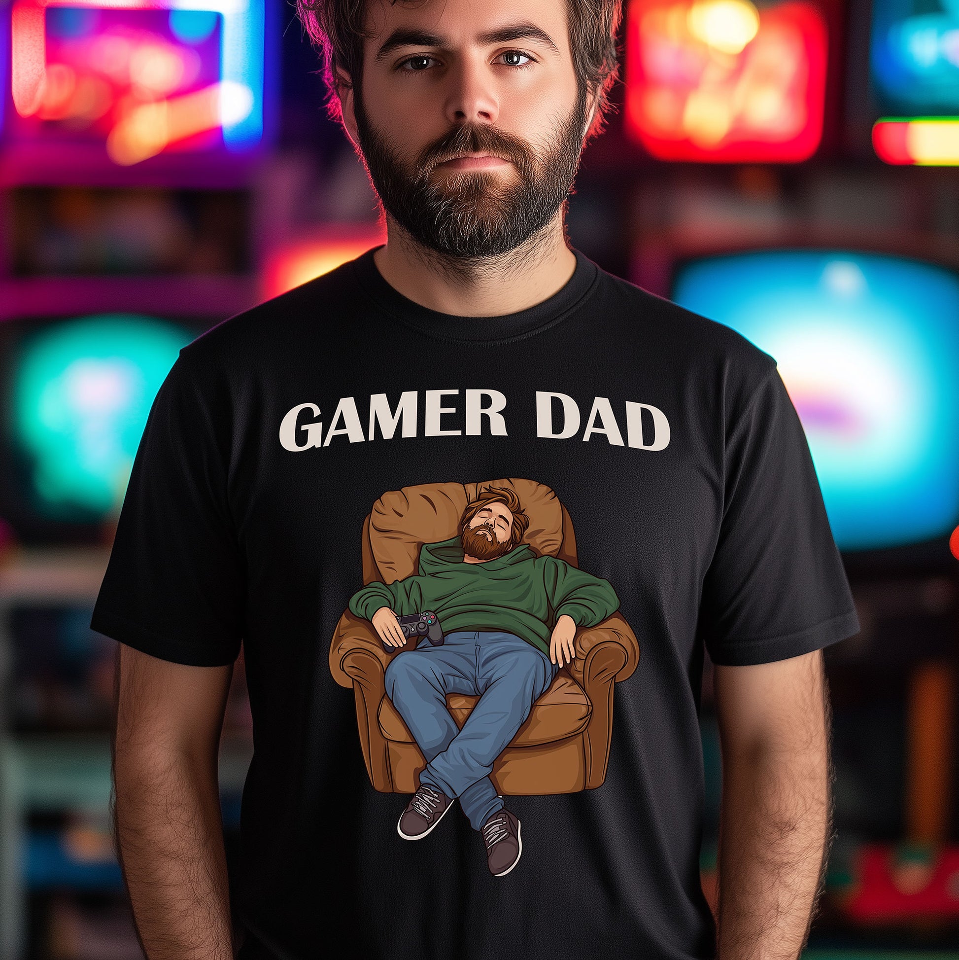 Dieses humorvolle T-Shirt ist für alle Väter, die den Spagat zwischen Familienleben und Gaming meistern! Das GAMER DAD T-Shirt zeigt einen sympathischen, bärtigen Mann, der mitten beim Zocken mit einem PS4 Controller völlig erschöpft auf dem Sessel eingeschlafen ist. Der lockere Griff, der entspannte Gesichtsausdruck und der große Schriftzug GAMER DAD darüber bringen die Botschaft auf den Punkt: Auch Super-Dads brauchen mal eine Pause… selbst beim Gaming! Dieses T-Shirt ist eine liebevolle Hommage an alle Papas, die tagsüber alles geben und abends trotzdem versuchen, noch ein paar Runden zu zocken.
